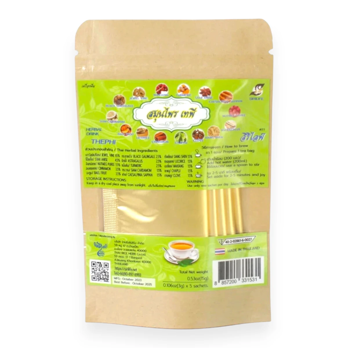 Embrace the essence of Thai herbal heritage with our New Recipe Tapee Tea, presented in convenient sachets. This unique blend features 15 distinct, organically sourced herbs, drawing inspiration from generations of traditional Thai wellness practices.